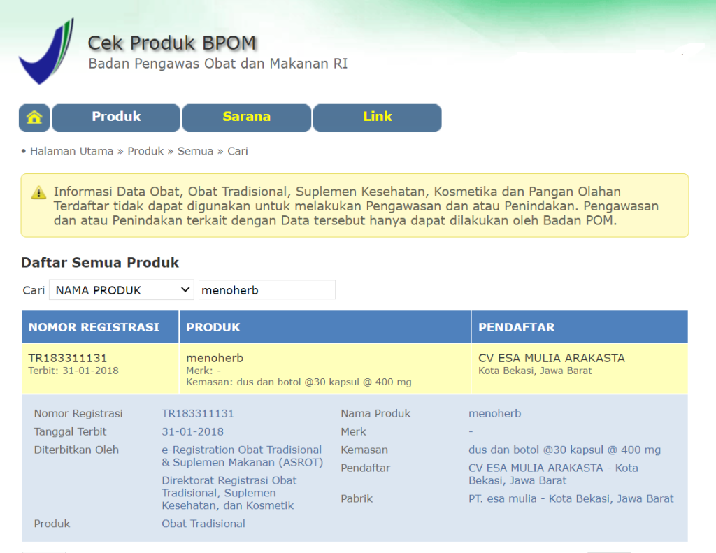 Sudah terdaftar di Badan Pengawas Obat dan Makanan (BPOM)