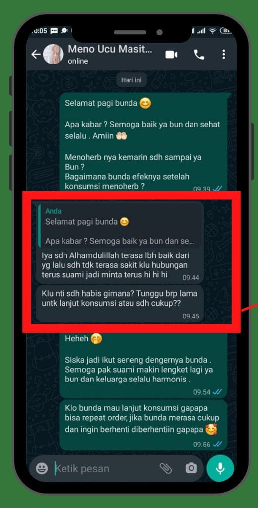 * Mohon diperhatikan ya bund, obat ini adalah salah satu bentuk ikhtiar bunda untuk mengatasi keluhan menopause, hasilnya tetap tuhan yang menentukan. Testimoni diatas adalah asli dan bisa dipertanggungjawabkan.